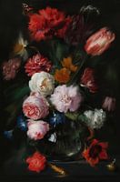 Dynamisch stilleven met bloemen in een glazen vaas, naar het werk van Jan Davidsz. de Heem, uit 1650 - 1683, uit de Rijkscollectie van het Rijksmuseum. Maar dan in een opgeschoonde, moderne variant. Kleurrijker, contrastrijker en expressionistischer.