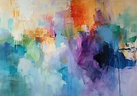 Dynamische Balans - Dit abstracte schilderij is een verleidelijke samenkomst van koele en warme tonen, waarbij de zachte overgangen en contrasterende strokes een gevoel van dynamiek creëren. De gedurfde oranje en blauwe tinten springen eruit tegen een achtergrond van serene blauwe en paarse vlakken, terwijl witte druppels de vrije en…