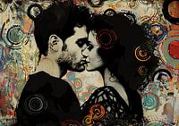 In deze krachtige en expressieve afbeelding komen de intense emoties van liefde tot leven in een explosie van contrast en kleur. Het beeld toont een man en vrouw, met gesloten ogen, elkaar innig kussend. De stilte van het moment wordt doordrongen van een energie die zich uit in de spanning van hun lichamen, die dicht tegen elkaar…