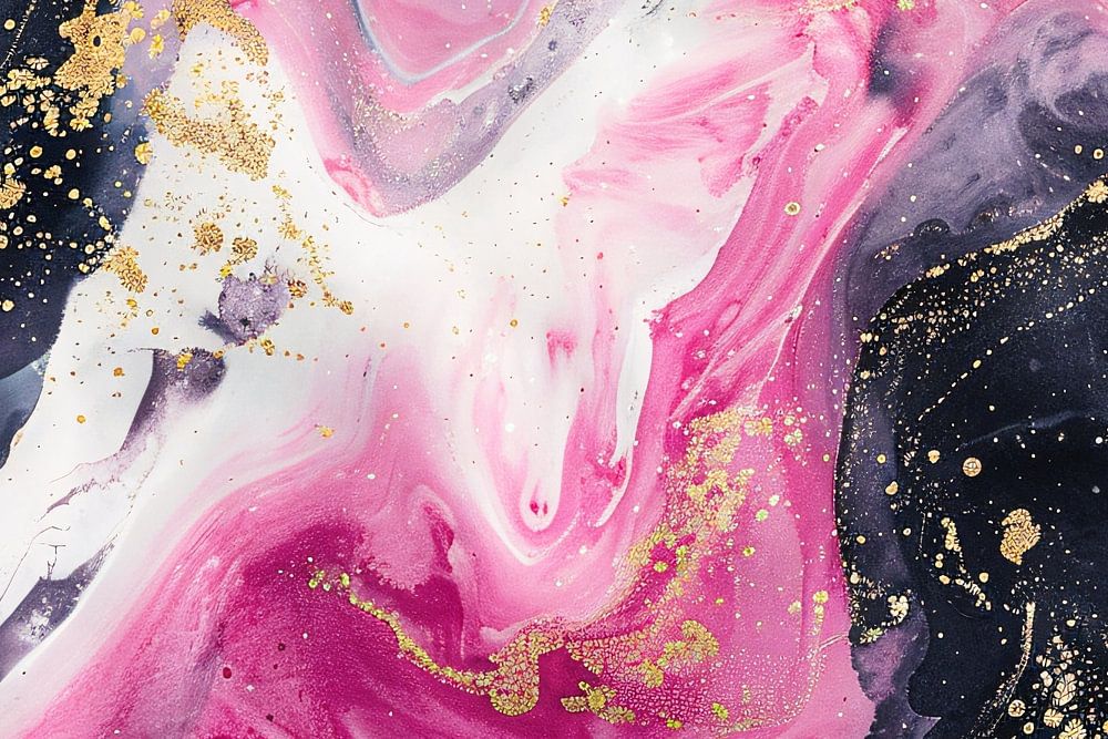 Ontdek een wereld waar kleur en vorm vloeibaar samensmelten in een betoverend schouwspel van abstractie. In dit ontwerp weerspiegelen golven van roze en wervelingen van goud het licht, terwijl het diepe zwart diepte creëert die de toeschouwer uitnodigt voor een nadere blik. Dit is geen gewoon kunstwerk, maar een poort naar een rijk van esthetische contemplatie. Het nodigt uit om de drukte van alledag te vergeten en op te gaan in de subtiele overgangen van kleur en licht. Waar het wit het canvas van rust biedt, biedt de goudsprankeling een touch of luxury. Dit stuk staat prachtig in een modern ingerichte ruimte of in een minimalistisch decor waar het als statement piece kan fungeren.