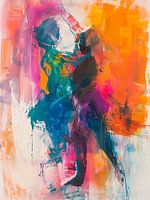 Met een energieke compositie van vormen en lijnen, dit kunstwerk toont een dans van figuren in een kleurrijk spektakel. Geschikt voor elke ruimte die vraagt om een krachtig, visueel statement, zoals een eigentijds kantoor of een creatieve werkplek.