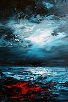 Dit prachtige moderne schilderij vangt de essentie van een dynamische zee en een bewolkte lucht. De kunstenaar gebruikt een levendige combinatie van blauw, zwart, wit en grijs om een gevoel van beweging en energie over te brengen. De rode accenten in het ontwerp voegen een dramatisch contrast toe, waardoor het kunstwerk echt opvalt.…