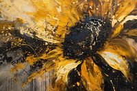Dit prachtige kunstwerk brengt de dynamiek van een abstracte zonnebloem tot leven met zijn rijke textuur en levendige kleurenpalet. De zwarte kern, omringd door gouden en gele tinten, creëert een boeiende focus in elke ruimte. De subtiele grijze en witte accenten voegen diepte toe en maken dit schilderij een must-have voor liefhebbers van moderne kunst en natuurlijke vormen.