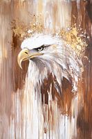 Dit indrukwekkende kunstwerk toont de krachtige blik van een adelaar, met verf die op dynamische wijze over het canvas lijkt te druppelen. De combinatie van witte, bruine en gouden tinten zorgt voor een prachtige compositie, terwijl de gestroomlijnde, vloeiende verflijnen een gevoel van beweging en energie geven. Het ontwerp is perfect voor liefhebbers van moderne en expressieve kunst en past goed in ruimtes zoals kantoren of slaapkamers, waar het een gevoel van kracht en vrijheid kan uitstralen. Door de abstracte elementen en de verfstreken die subtiel uitlopen, krijgt het werk een eigentijdse uitstraling die moeiteloos aansluit bij diverse interieurstijlen.