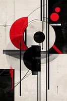 Dynamische cirkels - Abstracte beweging in zwart, rood en wit van Poster Art Shop