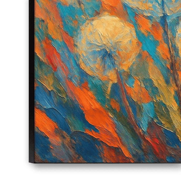 Een kleurrijk en expressief bloemenschilderij voor in de woonkamer. Het straalt optimisme en vrolijkheid uit. De schoonheid van de natuur is altijd een onuitputtelijke bron van inspiratie. Bloemenfantasieën zijn kunstig geënsceneerd.