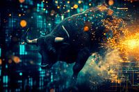 Dynamische stierenaanval - Digital Art van Poster Art Shop
