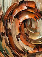 "Dynamische Stroming" is een abstract kunstwerk dat een gedurfde en expressieve techniek tentoonstelt, met brede kleurstreken die de vloeibaarheid en beweging van de natuur zelf oproepen. Het schilderij vangt de essentie van beweging door rijke texturen en contrasterende tinten van oranje, bruin en zacht crème. De draaiende patronen…