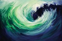 De betoverende wervelingen van levendig groen en diepblauw ontvouwen zich in een dynamische dans die de kracht van de zee laat zien. Deze energieke compositie brengt frisheid en levendigheid in elke ruimte en is bijzonder geschikt voor de keuken, waar het creatieve inspiratie stimuleert en een levendige sfeer creëert.