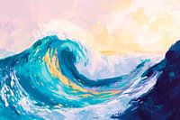 Majestueuze golven steken krachtig af tegen de lucht, hun levendige blauwe tinten wekken de indruk van een frisse zeebries. Gouden lichtstralen dansen over het wateroppervlak en geven het tafereel een rustgevende warmte. Dit indrukwekkende kunstwerk is perfect voor in de woonkamer om een ontspannen, maritieme sfeer te creëren.