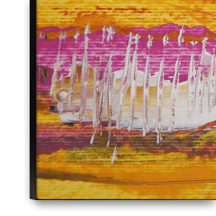 Jouw gekozen kunst als print op doek, gespannen in een aluminium frame. Snel en eenvoudig te verwisselen voor een frisse uitstraling, helemaal zoals jij het wilt.