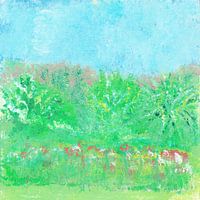 Dit stuk laat heel goed de vrolijkheid en groene rust van de kunstenaar en gemoedelijkheid van rood bonte koeien. Die abstracte weergave kwam in latere werken in dezelfde periode veel terugkwam.