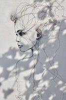 Een voorstelling van een vrouw waarbij de draden 'wegwaaien' & de schaduw haar omhult.