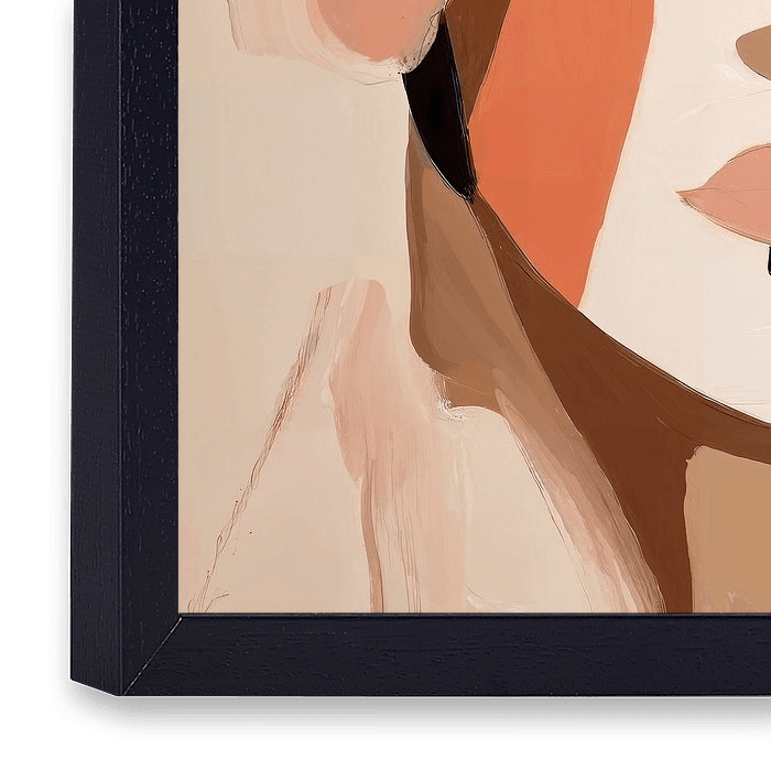Abstract portret van een vrouw in aardetinten. Kleurstelling roze, zalm, bruin, beige. zwart en wit. Laat veel ter verbeelding en eigen invulling over. Tijdloos. Passend bij diverse stijlen en trends. Sweet embrace. Modern Abstract. Peach Fuzz. Artist: Bianca ter Riet.