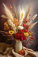 Earthen Allure: Bouquet and Wheat on a Beige Canvas