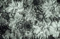 Verschillende monochrome bloemen, ondergedompeld of drijvend in water.
