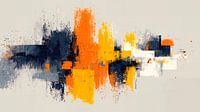 Een abstract kunstwerk met een dynamische compositie waarin krachtige penseelstreken en kleurspatten samenkomen. De textuur van ruwe randen en overlappende lagen roepen een ​​gevoel van beweging en energie op. Een gedempte beige achtergrond versterkt de levendigheid van de elementen op de voorgrond. De compositie is modern en…