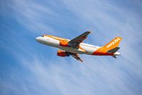 Een Easy Jet Europe, met registratie OE LKL, stijgt op van Amsterdam International Airport Schiphol. Easy Jet is een van de eerste low-budget vliegmaatschappijen in Nederland.