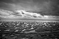 Koop dit landschapskunstwerk Eb in de Waddenzee bij Moddergat, zwart wit van Patrick Verhoef op canvas, aluminium dibond, (ingelijste) fotoprint, behang en ArtFrame, op maat geprint in Fine-Art kwaliteit.