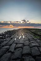 Zonsondergang op het strand van Julianadorp aan Zee. Deze foto is genomen tijdens laag water op een pier in de Noordzee.