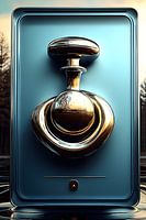 Echo Lock is een artefact van subliem minimalisme en surrealistische precisie en vangt de essentie van drempel-energie - zowel als deurklopper als dimensionale sleutel. Deze elegante, hoogglans gepolijste metalen vorm zweeft op een rijke blauwe achtergrond, waarbij de gebogen oppervlakken een gouden, bijna buitenaards landschap…