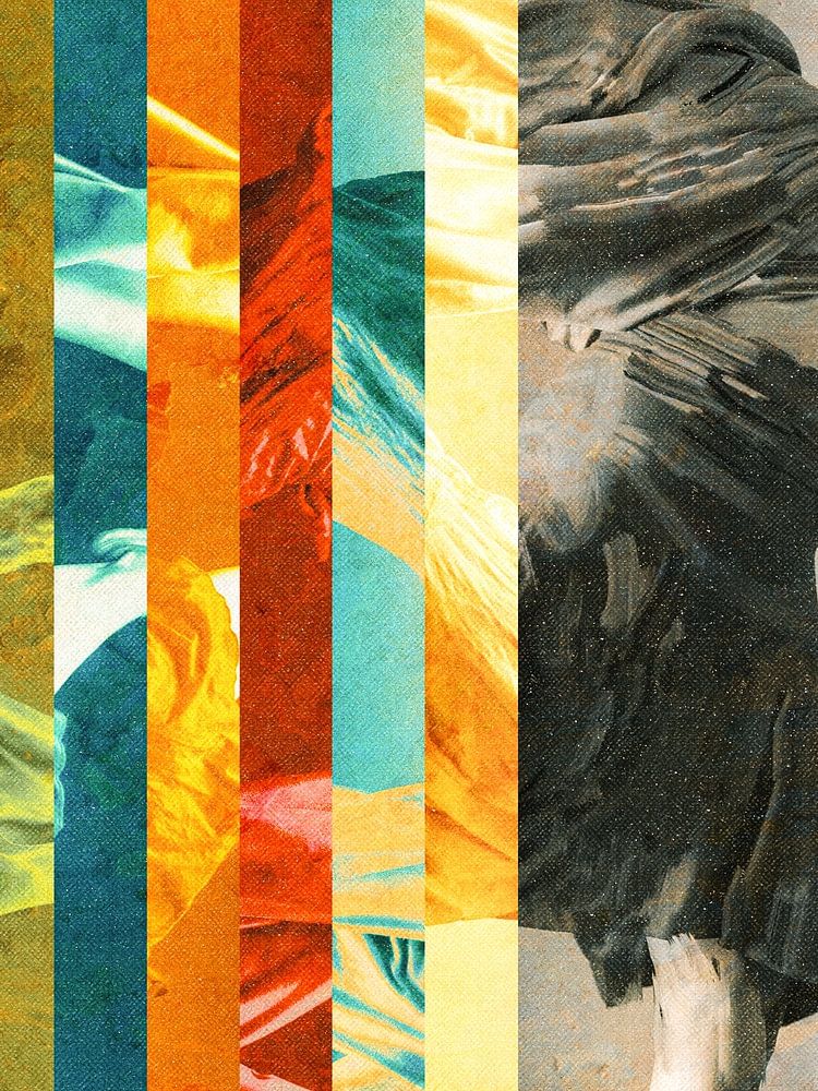 Een danseres draait zich om halverwege haar pas, haar lichaam is voor de helft opgelost in strepen van levendige kleuren terwijl de rest zacht blijft in grijstinten. De plooien van haar kledingstuk voegen een sculpturaal detail toe en contrasteren met de gedurfde verticale banden. Ik werd geïnspireerd door de balans in dans tussen discipline en vrijheid, en hoe beweging zowel orde als vrijheid kan inhouden. De sfeer is warm, levendig en vol energie, terwijl er toch ruimte is voor kalme reflectie. Gemaakt met gelaagde digitale texturen, combineert het schilderachtige zachtheid met moderne abstractie. Dit werk brengt leven en elegantie in een ruimte, perfect voor mensen die geïnspireerd zijn door dans, beweging of hedendaagse kunst.