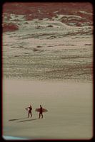 Een moment van stille verwachting voordat het getij het overneemt. Dit werk legt de weidsheid van de kustlijn vast en de gedeelde stilte tussen twee zielen aan de rand van de wereld. Ideaal om een gevoel van rust en perspectief in je interieur te brengen.