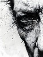 Dit monochrome kunstwerk duikt diep in het rijk van de emotie en toont een intense close-up die de kijker meesleept in een wereld van onvervalste expressie. De ingewikkelde details van het oog en de getextureerde lijnen brengen een gevoel van kwetsbaarheid en kracht over en nodigen uit tot contemplatie. Elk teken onthult de passie en…