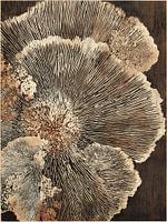 Een fascinerend digitaal wandtapijt, waar abstracte organische vormen wiegen als zacht geruis in een mix van aardetinten en vloeiende texturen
