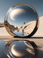 Dit intrigerende kunstwerk vangt het moment waarop materie lijkt te luisteren naar zijn eigen bestaan. Een glanzende, bijna vloeibare metalen bol balanceert tussen perfectie en vervorming, als een stille explosie van symmetrie. Het object is spiegelend, goud- en zilverkleurig, en straalt een bijna buitenaardse elegantie uit. Binnenin ontvouwt zich een oneindige tunnel van reflecties — alsof de tijd zelf wordt weerkaatst in een eindeloze lus.
