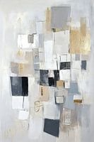 Echoes in Gold - Dit abstracte schilderij uit Cuba bestaat uit een complex samenspel van geometrische vormen in neutrale en gouden tinten, wat een gevoel van diepte en textuur geeft.