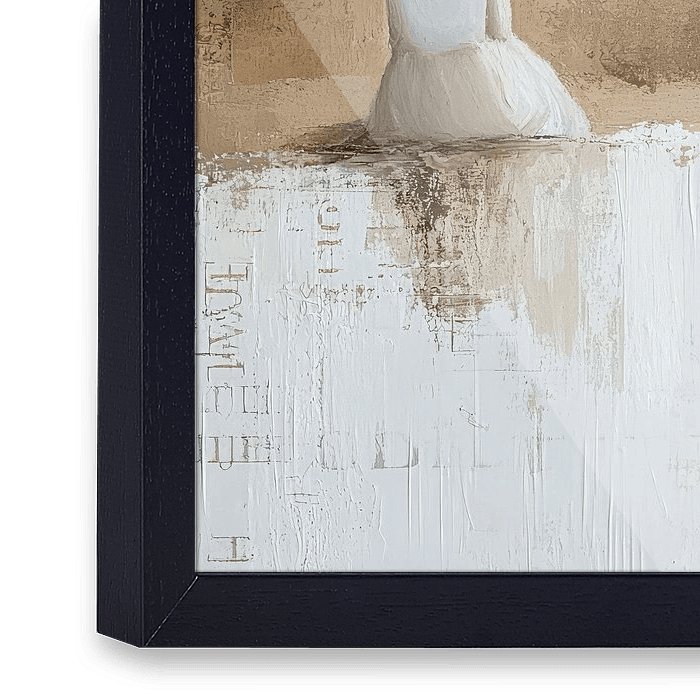 "Echoes in the Sand" een bijzondere blikvanger voor je interieur. Een portret van een vrouw, op haar rug gezien in een abstracte en natuurlijke omgeving in aardetinten. Met een melancholisch tintje.