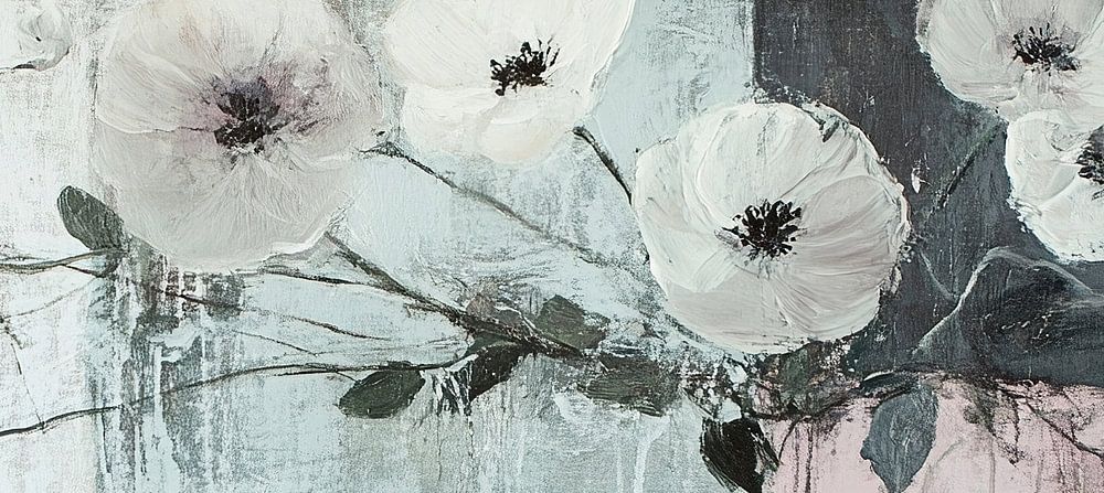 Details: bloemen, wit, pastel, rustig, natuur, kunst, zwart, grijs, roze, schilderij