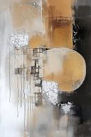 Details: abstract, modern, kunst, okergeel, grijs, textuur, vormen, beweging, canvas, contrast
