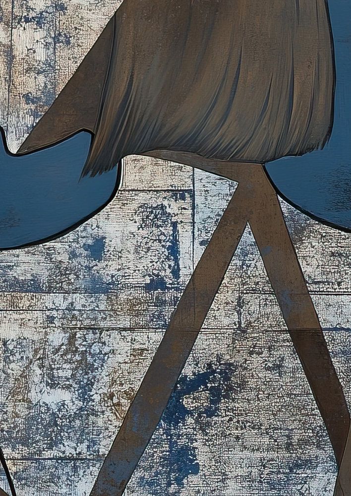 Details: vrouw, silhouet, geometrisch, industrieel, urban, roestbruin, donkerblauw, textuur, verweerd, gestileerd