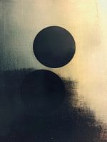 Een krachtig minimalistisch werk waarin twee zwarte cirkels zweven in een spel van schaduw, textuur en subtiel goud licht. De eenvoud van de geometrie contrasteert met de rijke diepte van de achtergrond, wat het werk een mystiek en meditatief karakter geeft. Ideaal voor een modern interieur, galerie-achtige setting of als statement…