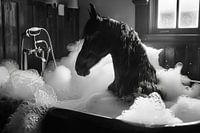 Deze betoverende badkamerfoto toont een edel paard dat majestueus in zijn badkuip rust en je toilet een heel speciale sfeer geeft. De zwart-wit fotografie legt de gratie van het paard vast en benadrukt de details van de scène, waardoor het een charmante en unieke toevoeging aan je badkamerdecor is. Perfect om je toilet of badkamer op te fleuren, en een herinnering dat zelfs majestueuze dieren momenten van rust en ontspanning kunnen ervaren. Deze moderne serie badkamerafbeeldingen biedt stijlvolle decoratie die niet alleen verwondering opwekt, maar ook een harmonieus tintje aan je badkamer geeft. Breng een sfeer van elegantie en schoonheid in je badkamer met dit betoverende kunstwerk en laat je betoveren door zijn uitstraling.