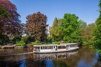Edel woongebouw aan de Lange Zug in het voorjaar, zijbaai van de Outer Alster, district Winterhude, Hamburg, Duitsland