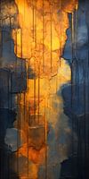 Deze verbluffende afbeelding toont een kunstzinnige compositie van koninklijk blauwe en gouden verf, die naadloos in elkaar overvloeien. De verf lijkt nog nat en druipt mooi naar beneden, waardoor een gevoel van beweging en levendigheid ontstaat.