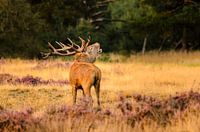 Burlend Edelhert (Cervus elaphus) tijdens de bronst periode. Foto gemaakt op de Veluwe.