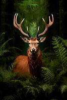 Koop dit digital art kunstwerk Edelhert tussen de varens van Richards Fine Art als reproductie op canvas, aluminium dibond, (ingelijste) fotoprint, behang en ArtFrame, op maat geprint in Fine-Art kwaliteit.