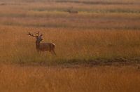 Tijdens de borst burlen de edelherten er op los, hier in het hoge gras tijdens het ondergaan van zon laat het edelhert zich goed horen.