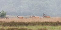 Als je van de natuur wilt genieten moet je soms vroeg je bed uit... 4 Uur 's morgens ging de wekker, maar wat hebben we veel gezien. Een roedel hinden met kalfjes en een geweidrager op de heide langs de rand van het bos bij Uddel.