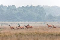 Als je van de natuur wilt genieten moet je soms vroeg je bed uit... 4 Uur 's morgens ging de wekker, maar wat hebben we veel gezien. Een roedel hinden met kalfjes op de heide langs de rand van het bos bij Uddel.