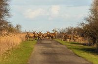 Edelherten overstekend op de weg van Brian Morgan