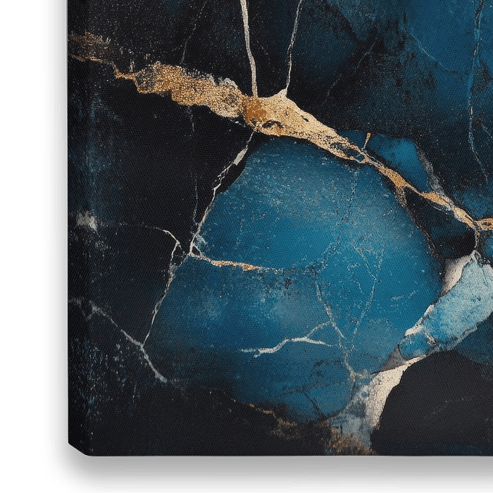 Dompel jezelf onder in de fascinerende diepte van glinsterende blauwe tinten afgewisseld met gouden aderen. Deze elegante compositie straalt een mystiek aura uit en trekt ieders aandacht. Ideaal voor de woonkamer, transformeert het elke kamer in een oase van rust en stijlvolle verfijning. Een waar meesterwerk voor verfijnde woonruimtes!