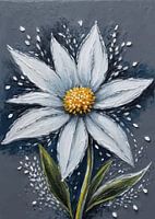 Dit acryl canvas kunstwerk toont de edelweiss bloem in zacht, romig wit tegen een gedempte bergachtergrond. De schilderstijl benadrukt de delicate, wollige bloemblaadjes, waardoor de puurheid en veerkracht van deze alpine bloem wordt vastgelegd.