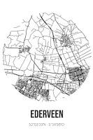 Zwart-witte landkaart, stratenplan of plattegrond van Ederveen. Ederveen is gelegen op de Veluwe, in de gemeente Ede, provincie Gelderland. Op de stadskaart zijn alle openbare wegen in Ederveen opgenomen. Verder is de kaart voorzien van de coördinaten van het centrum van Ederveen.
