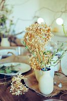 Een sfeervolle tafel met zachte herfstkleuren. Inspiratie voor decoreren eettafel. Geschikt voor eetkamer en woonkamer. Te combineren met aardkleuren.