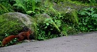 Tijdens de wandeling bij de Triberger waterval waren er veel eekhoorns te zien. Deze eekhoorn kwam op ons pad en verdween snel tussen de rotsen.